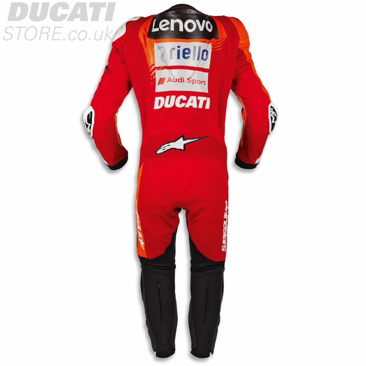 High performance and maximum safety with the Ducati Corse GP Team 25 professional suit, a faithful reproduction of the Ducati Team MotoGp 2025 color scheme. Produced in a limited edition by Alpinestars exclusively for Ducati, it is made of durable 1.3 mm thick perforated cowhide leather. The many elasticized inserts facilitate movement while ensuring riding comfort. The suit, certified in compliance with CE standards, is equipped with double-layer inner reinforcement on the seat. To ensure safety with lightweight and reduced thickness, there are areas of high-strength technical fabric on the shoulders, elbows and knees. The sleeves and legs are pre-curved to follow the movement. The protectors on shoulders, elbows and knees are at the highest level of quality with advanced technological solutions. Features include a low-profile collar, calf expansion zipper and removable inner liner in breathable fabric. Available only in standard sizes with men’s fit, it is provided with back protector housings.