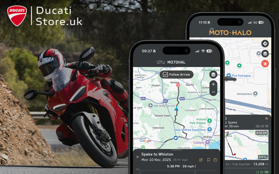 Moto Halo Lite is a compact and self contained GPS tracker, ideal for keeping an eye on your motorcycle at any given time.